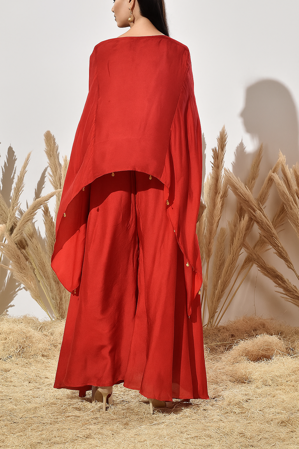 The royal shade of red with elegant hand embroidery on the chest —